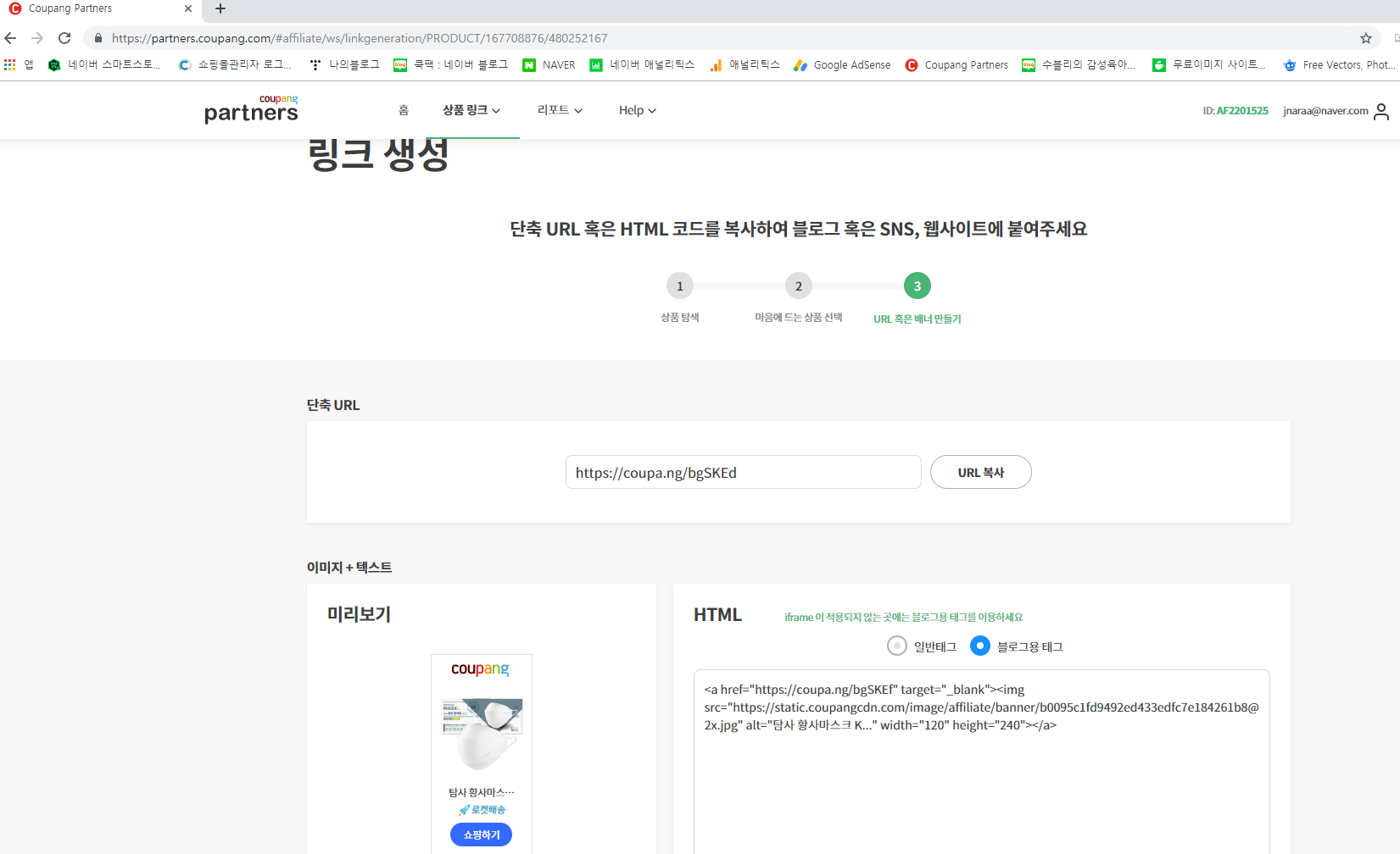쿠팡파트너스 쿠팡광고는 직접 링크를 생성해서