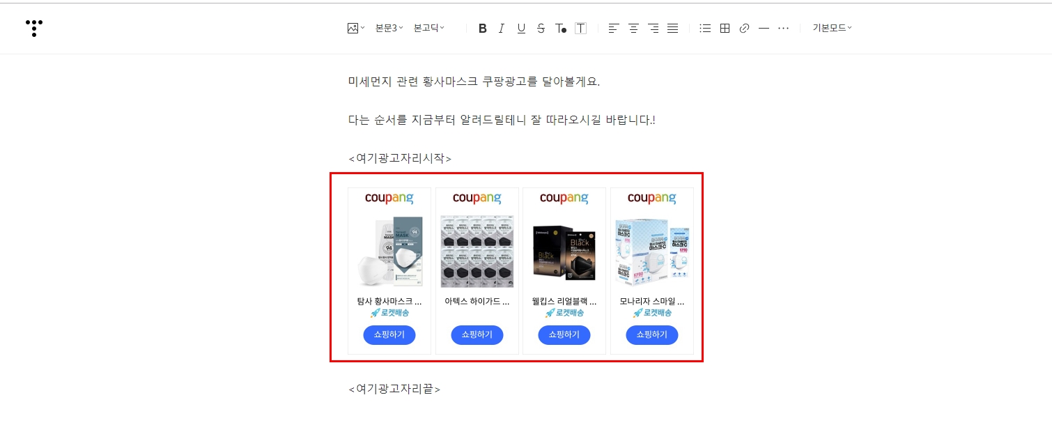 쿠팡광고, 쿠팡링크광고가 삽입된 거 보이시나요~~?