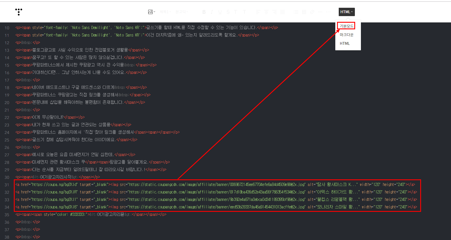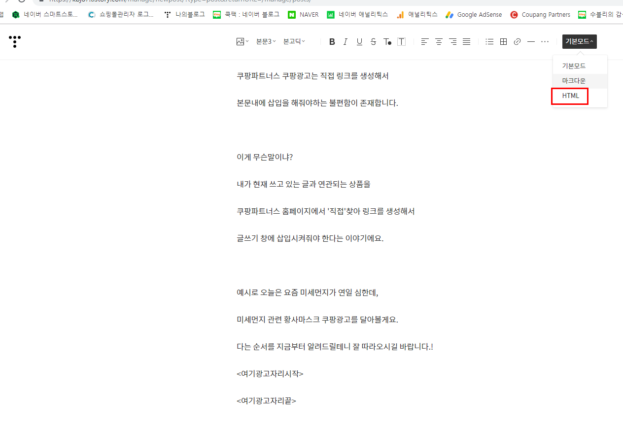 기본적으로 블로그에 쿠팡광고 삽입을 하기 위해서는