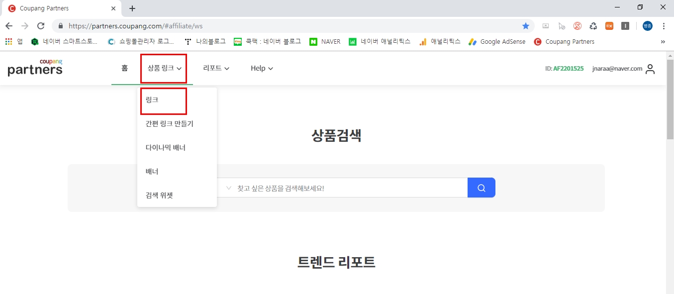쿠팡파트너스 홈페이지에서 '직접'찾아 링크를 생성해서