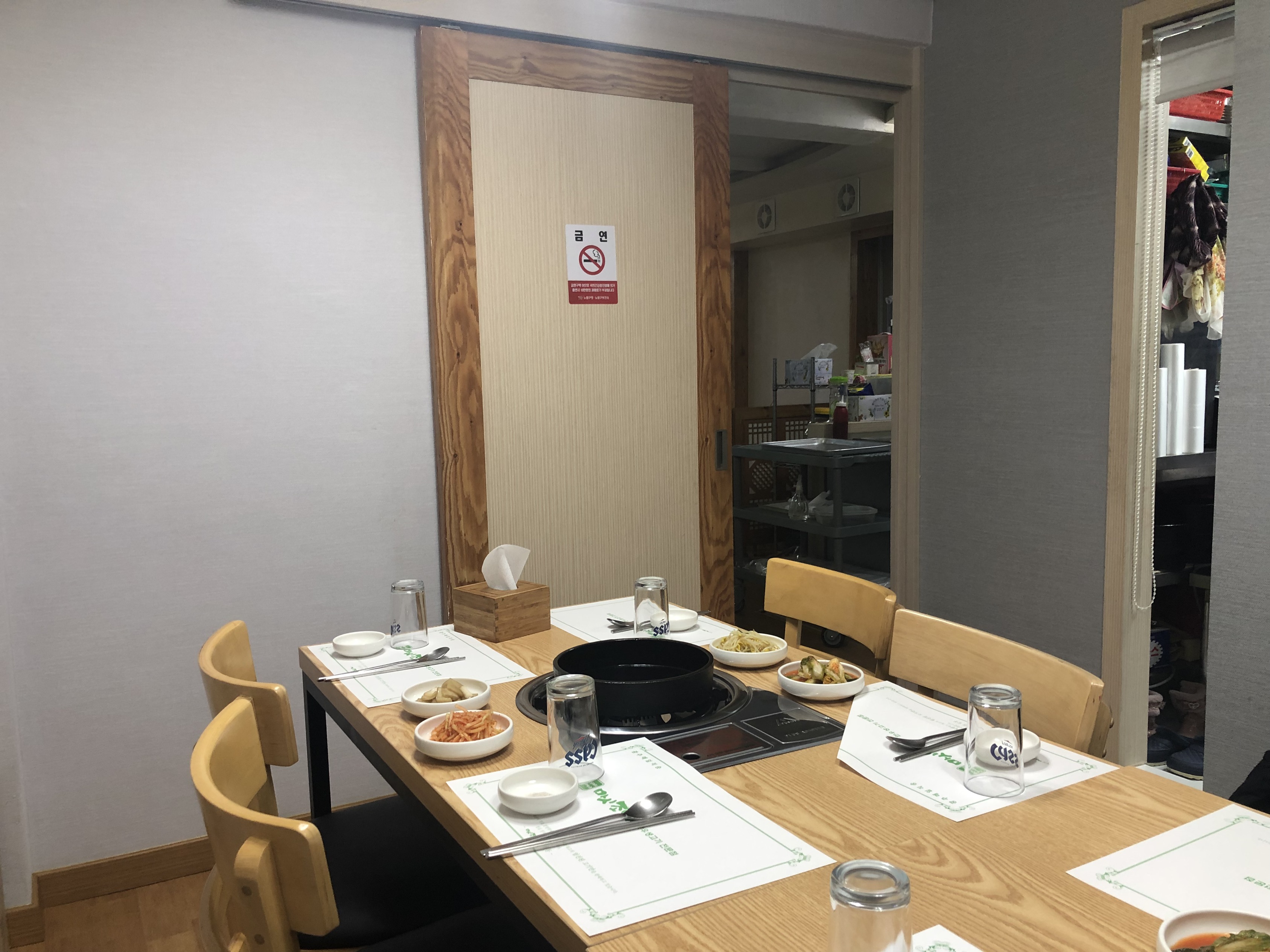 방에는 2개의 테이블이 있어 안쪽에 예약 단체석이 마련되어 있습니다.