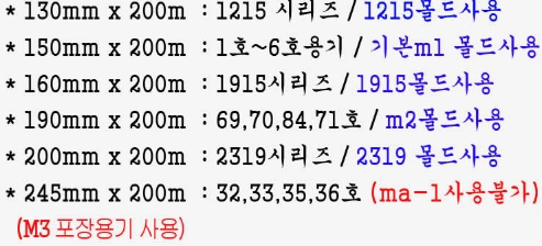 실링용기 1호~6호는 150mm 실링필름을 사용하시면 됩니다.