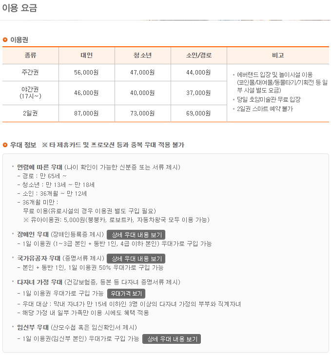 이용요금 : 성인 9,500원 청소년 7,000원, 어린이 6,000원