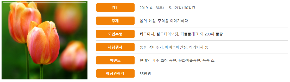 2019년 4월 13일에 코리아플라워파크에서 펼쳐집니다.