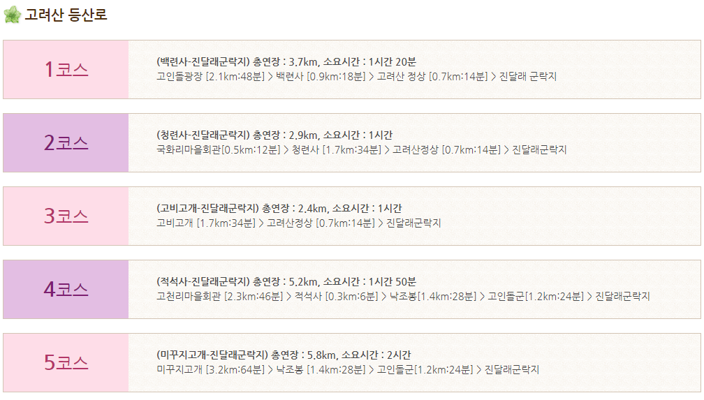 - 3코스(고비고개) : 고비고개~진달래군락지 (2.4㎞)