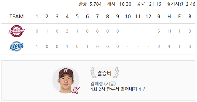 (키움히어로즈 5:3 승)