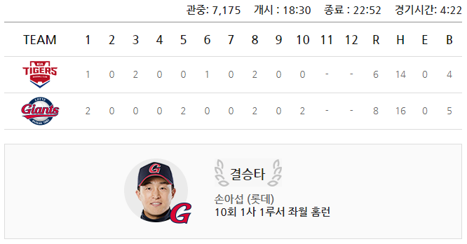 (롯데자이언츠 8:6 승)
