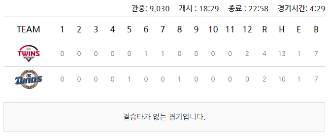 (LG트윈스 4:2 승)