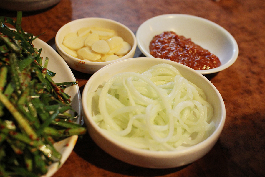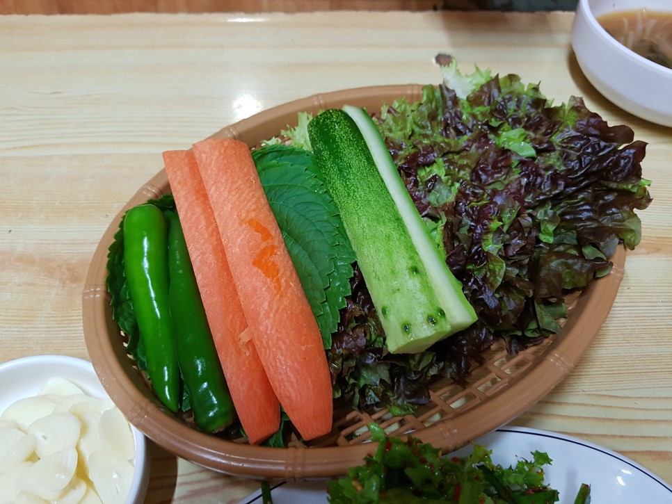고추, 깻잎새우젓, 쌈장, 마늘 등)