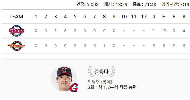 | 이대호 2홈런 브리검 7이닝 무실점 오늘 야구결과는? (0) | 2019.06.20 |