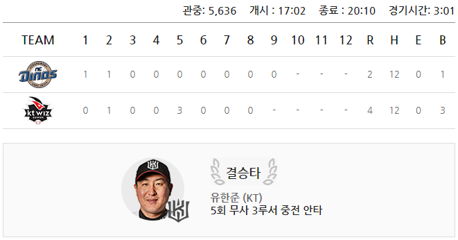 | 민병헌 4안타 경기 러프 3년연속 두자리수 홈런 프로야구결과 (0) | 2019.06.19 |