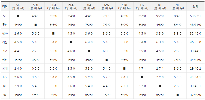 2019프로야구상대전적