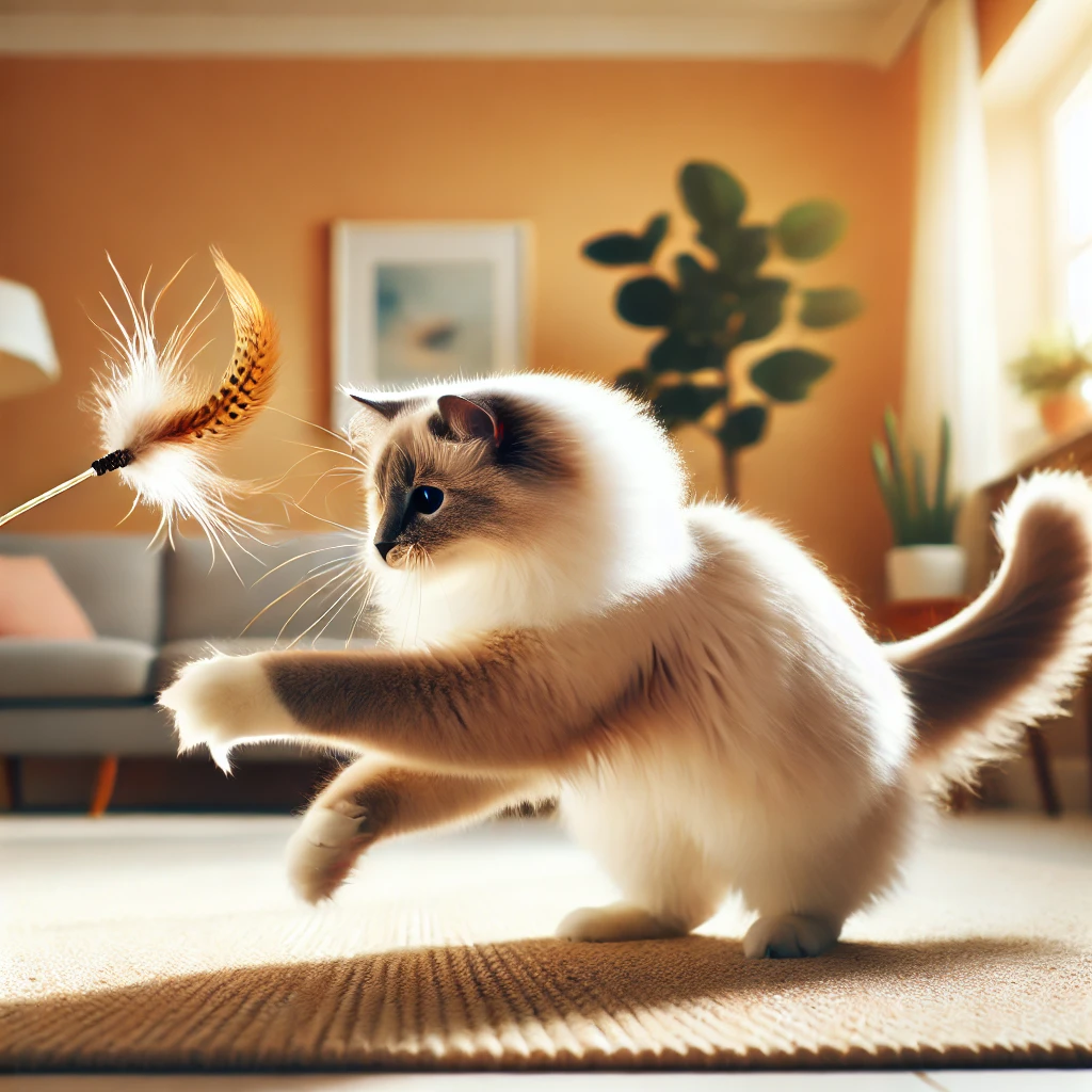 살이 쉽게 찌므로, 장난감이나 캣타워를 활용해
