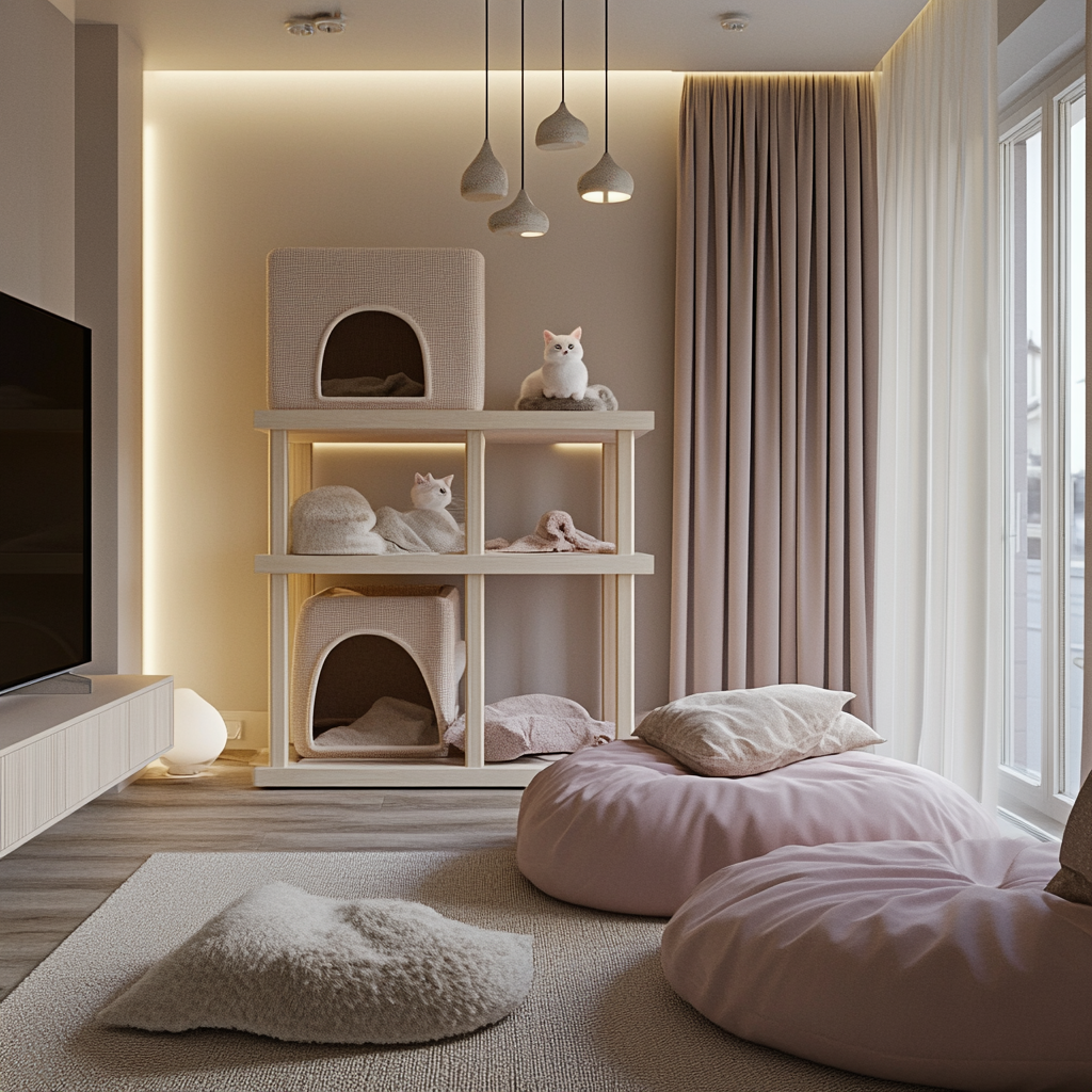 창가에 캣타워를 두면 햇볕도 쬐고,