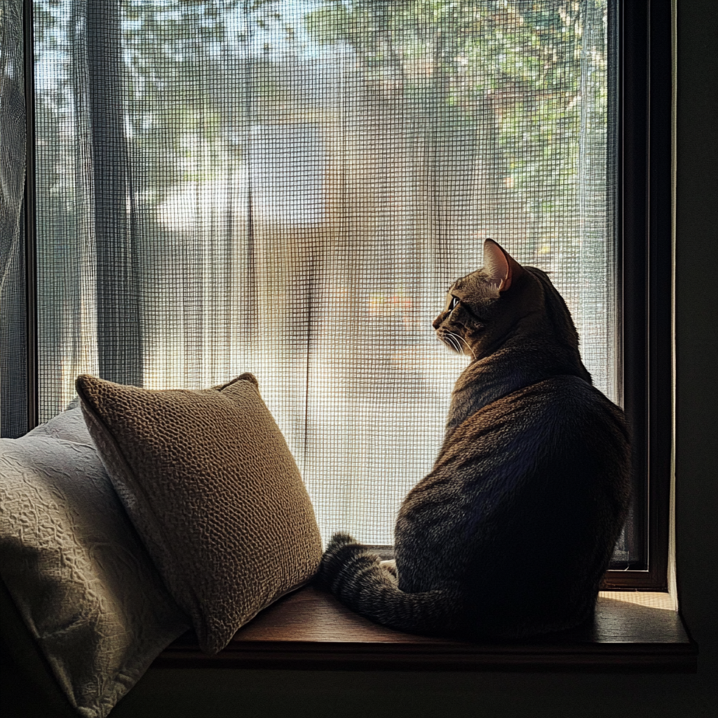 창문 앞에 캣타워나 방석을 놓아주면 좋아요!